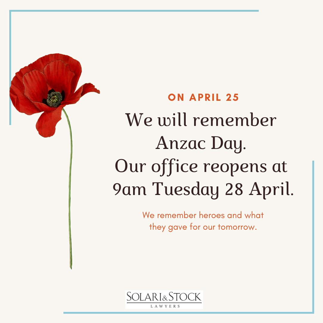 Solari and Stock will be closed from 5pm Friday 24th April and will reopen at 9am on Tuesday 28th April due to the Anzac Day public holiday. We look forward to speaking with you on our return. ...